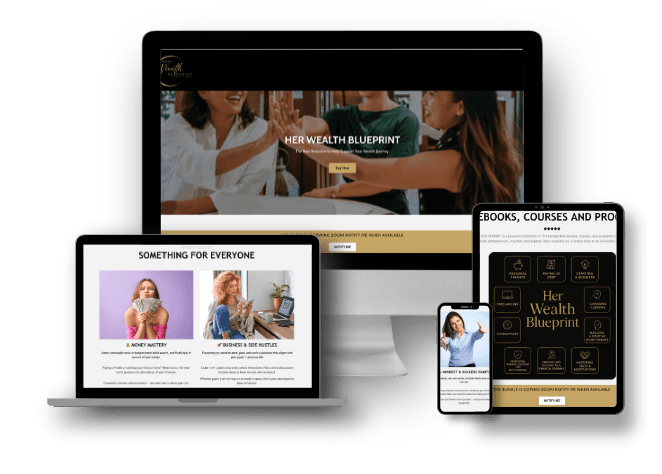 HER WEALTH BLUEPRINT is a powerful collection of 70+ handpicked ebooks, courses, and programs created by leading female entrepreneurs, coaches, and experts. Now available for a limited time at an incredible 99% off!